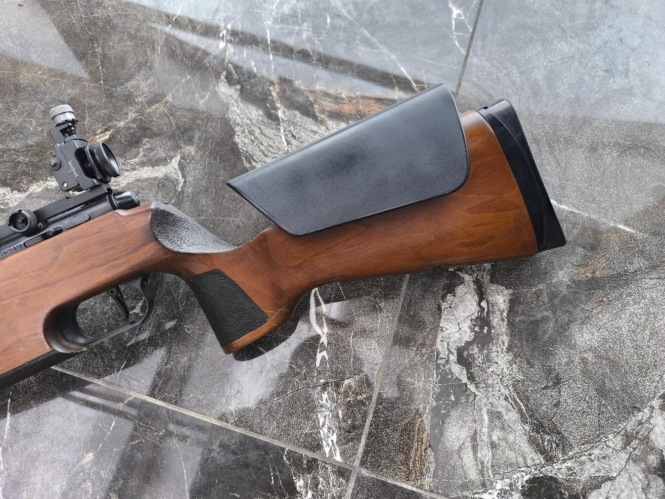 Ergonomiczne łoże sportowe: Karabin posiada wyczynowe, drewniane łoże sportowe z ergonomicznym, wyprofilowanym chwytem pistoletowym, który zapewnia naturalny i pewny chwyt. Dodatkowo, wyposażony jest w regulowaną bakę (podniesienie policzka) co umożliwia dopasowanie składu do strzelca i używanych przyrządów celowniczych
